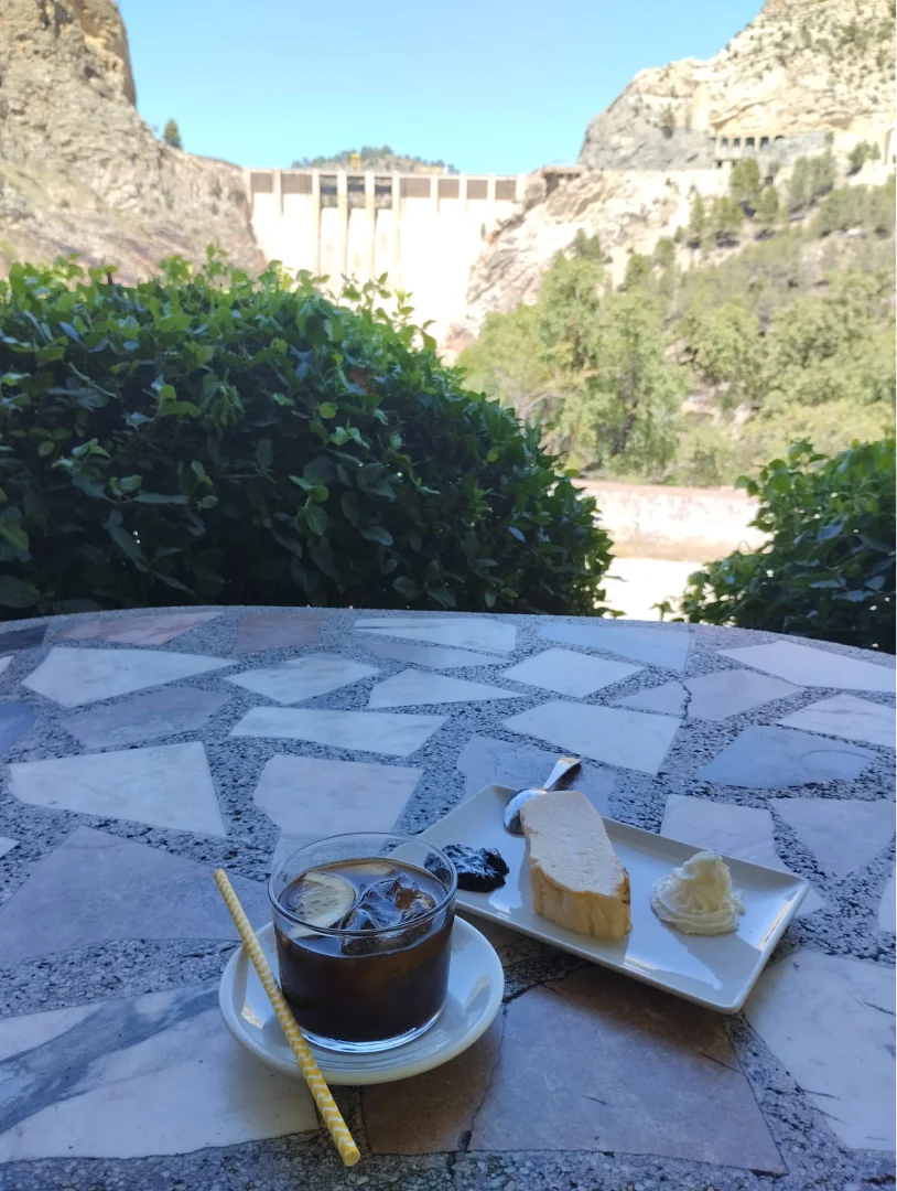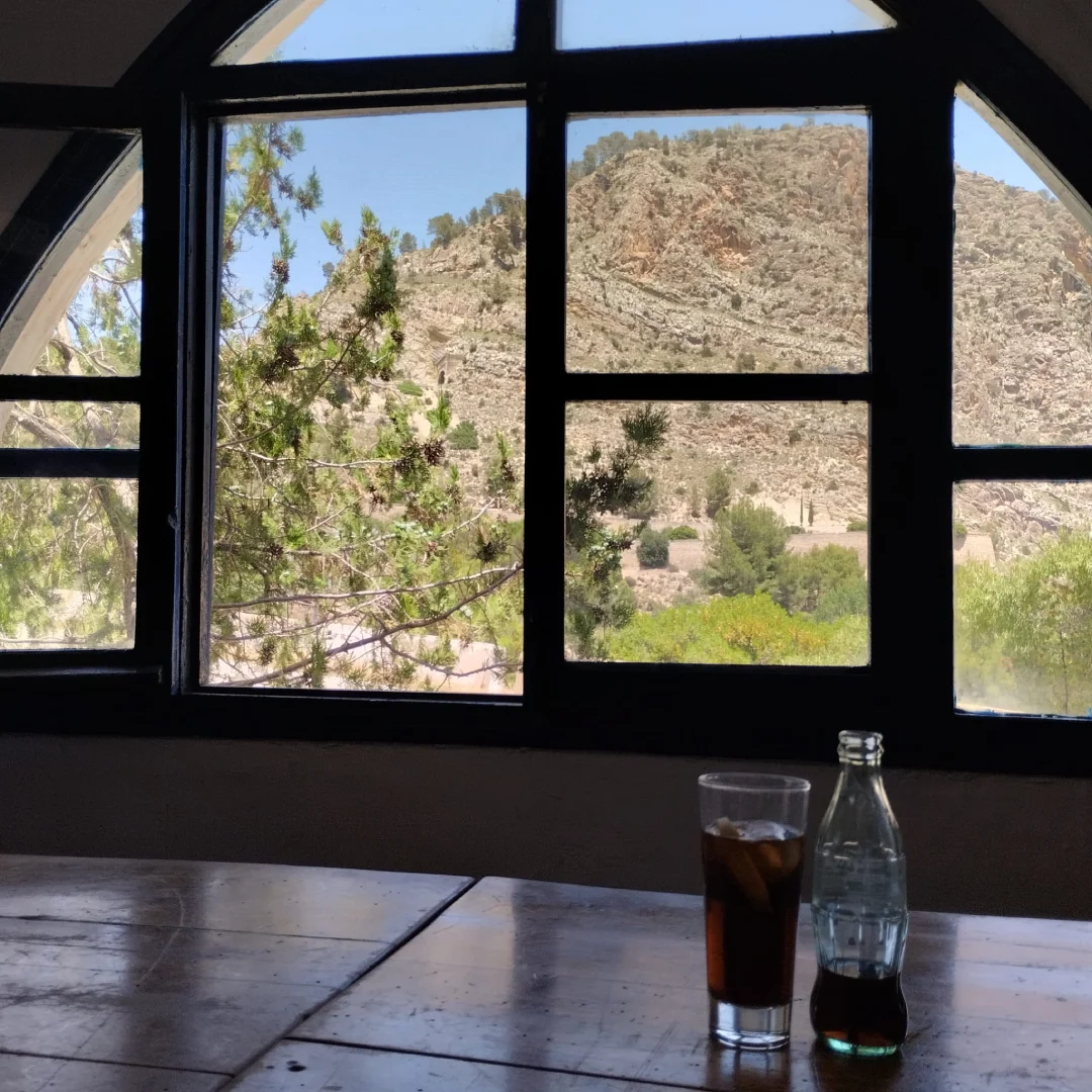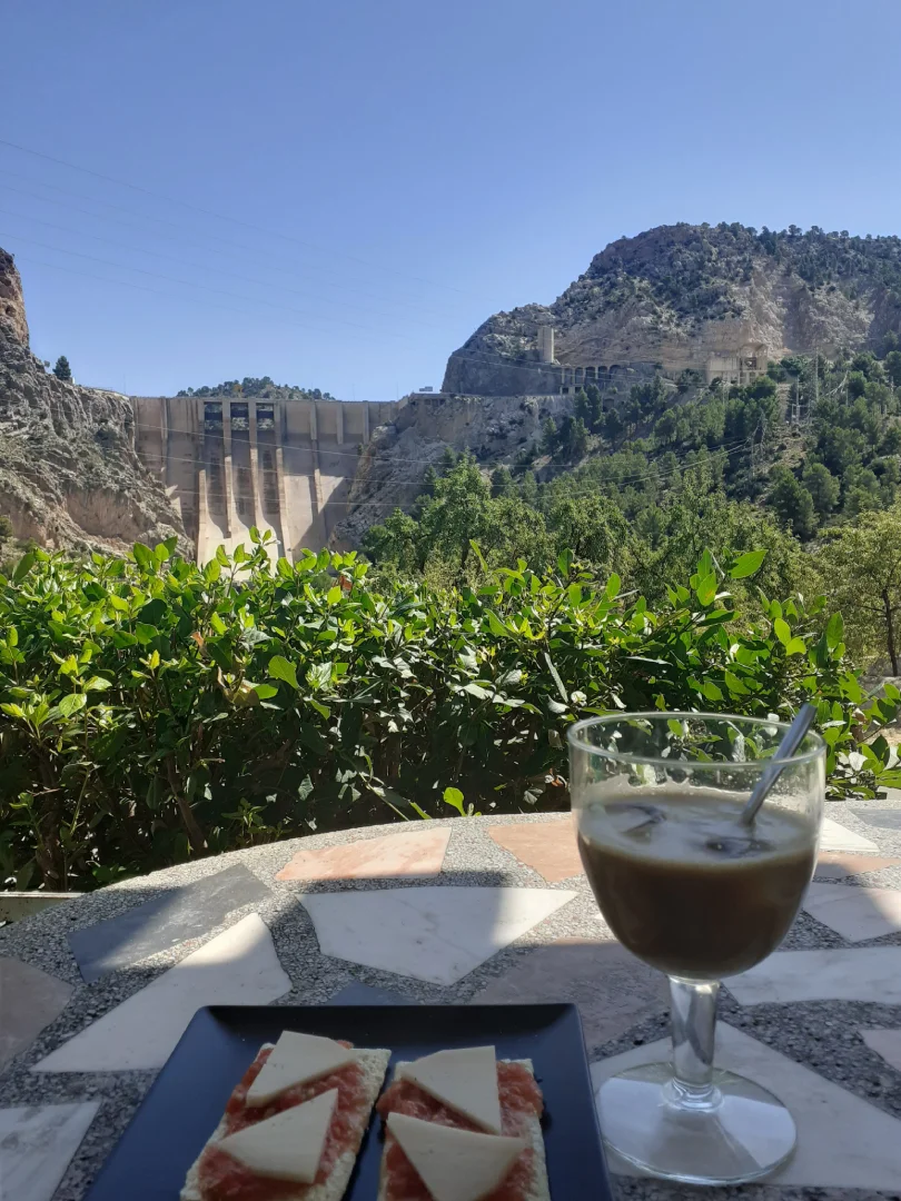 Disponemos de dos grandes terrazas con sombra natural y sombrillas; abiertas a la brisa del río con unas vistas únicas del valle del Cabriel.