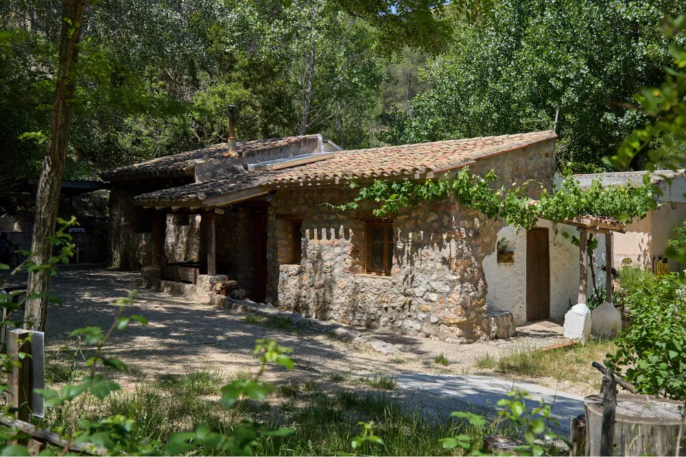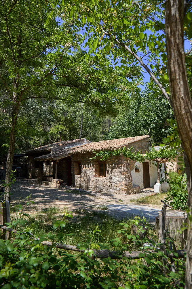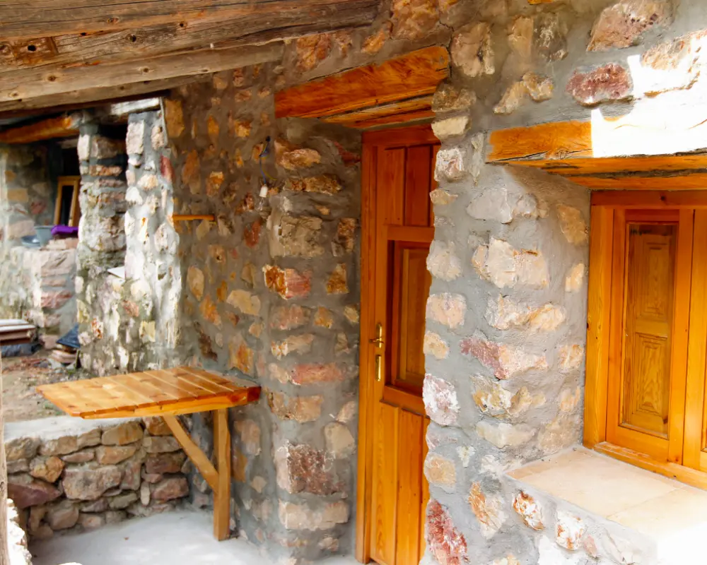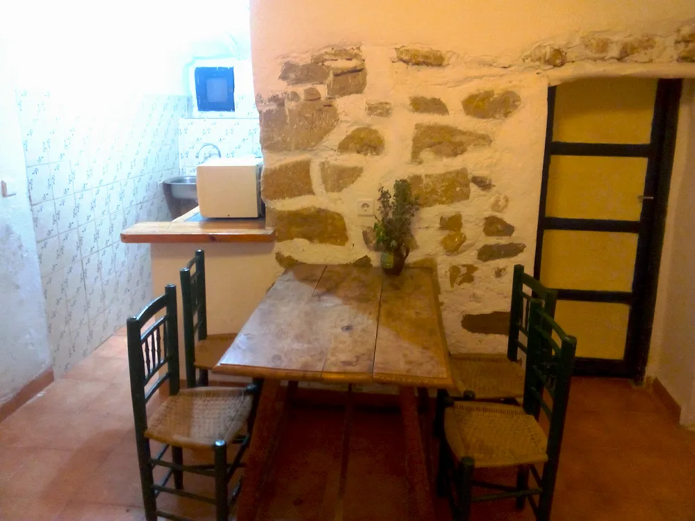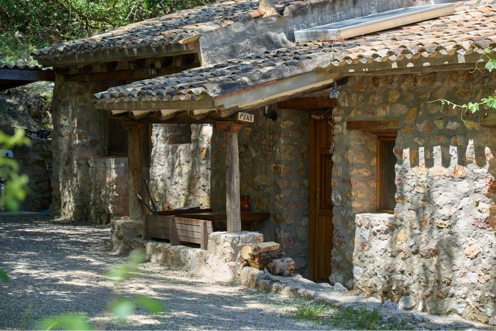Bungalow de piedra con chimenea de inercia térmica (permite calentar todo el bungalow). Superficie de 40m2.