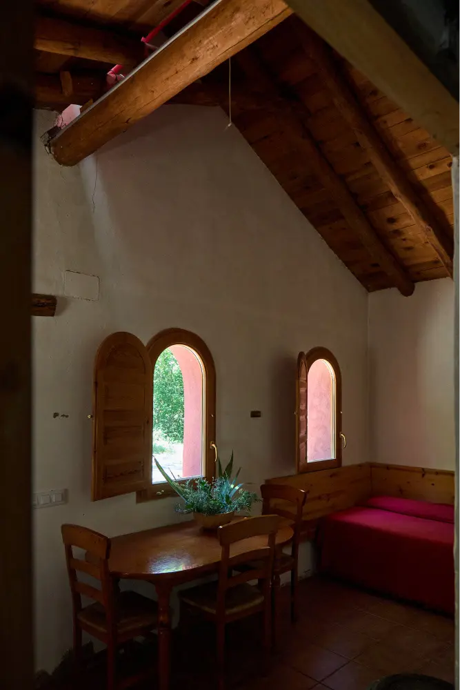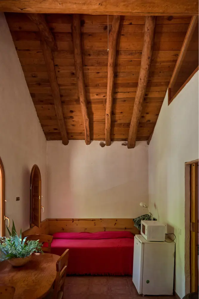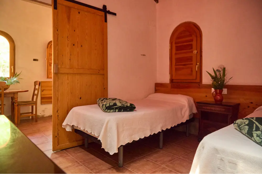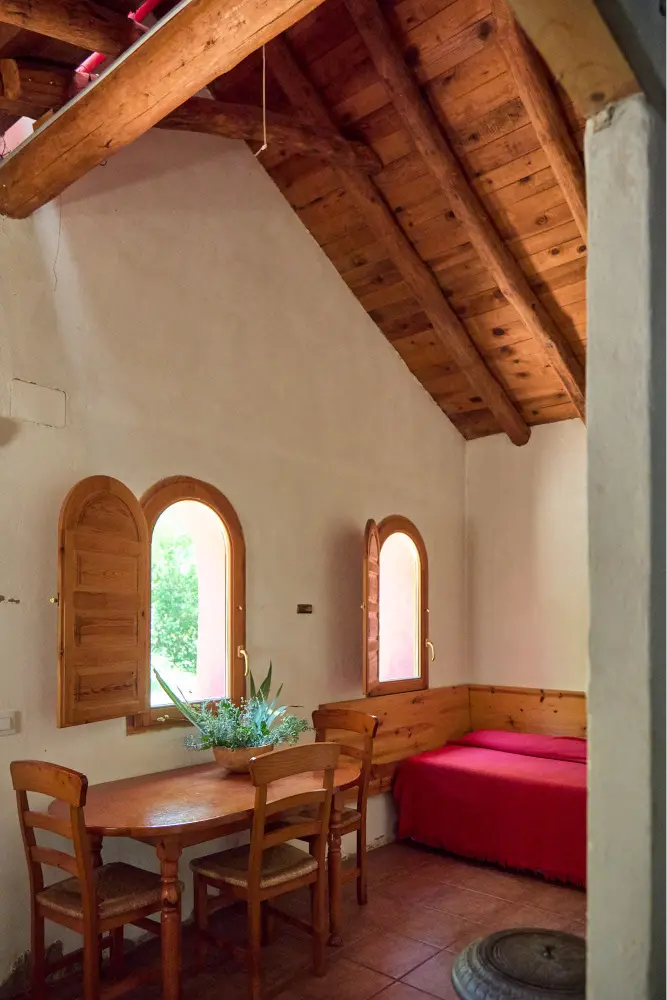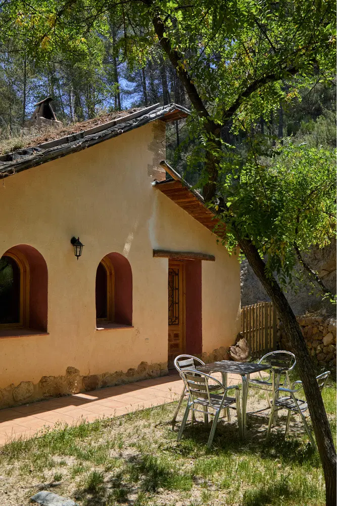 Bungalow de piedra con chimenea de inercia térmica (permite calentar todo el bungalow). Superficie de 40m2.