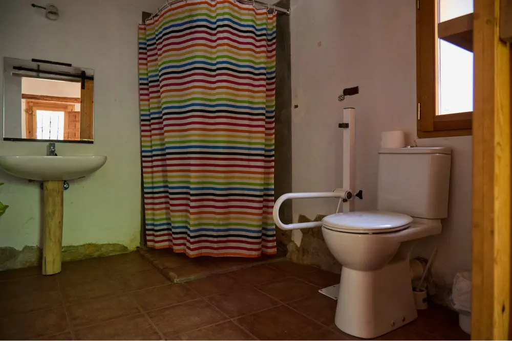 • Cuarto de aseo con ducha, lavabo e inodoro