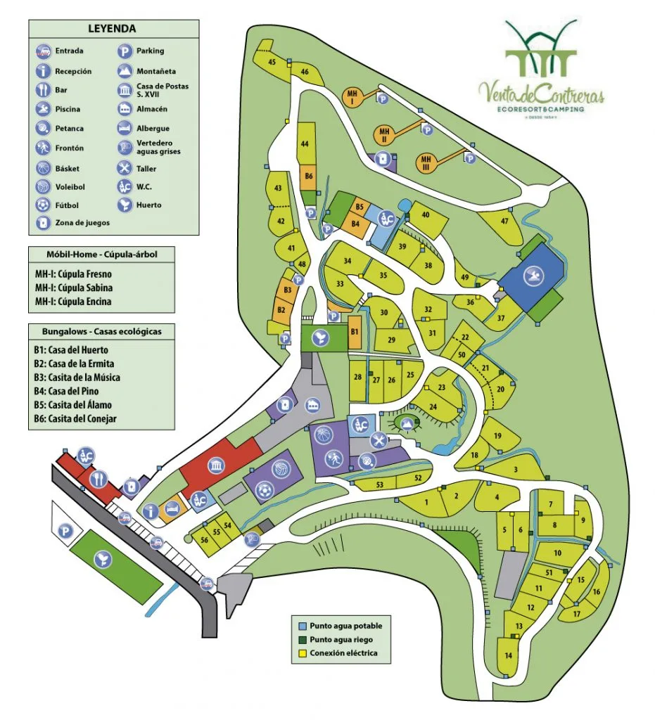 Actualmente contamos con 46 parcelas situadas en pleno arbolado con agua corriente y electricidad. También tenemos todos los servicios necesarios: lavabos, aseos, duchas con agua caliente, bar, restaurante, punto de conexión de luz para caravanas, piscina, pistas deportivas, turismo activo, talleres e infinidad de actividades para todas las edades (consulte nuestras ofertas).